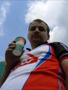 A rajtot - gondolván majd az emelkedőkön behozzuk - Andrissal nem vettük elég komolyan. Rám mindjárt az elején felkenődött egy méhe, és bosszúból a bokámba csípett, így a rajtkapun a közönség bíztatásától övezve, és a méhét a bokámról lepöckölve haladtam át. A komolytalan rajtunk azonnal megbosszulta magát, mert leszűkült úton szépen betömörödött a mezőny, az első komolyabb emelkedőnél pedig megtorpant a sprintelő rajtolók lelkesedése, így tolhattuk a tömeggel a bringát. Ezt követően néhány kellemesen rázós lefelé következett némi emelkedőkkel, utána pedig megkezdődött a végeláthatatlan mászás, ahol már elkezdhettük visszaelőzgetni az embereket. Bobot, aki O2 felvételi problémákkal küzdött, kicsivel fél táv után értük utol. A mászás vége felé a legmeredekebb részen elszakadtunk egymástól, Andris tolva pihent egyet. A következő részekre nem igazán emlékszem, ami részben a közel maximális intenzitásnak köszönhető. De a robotpilóta működött, így értem el az utolsó lefeléket. Majd áthullámvasutaztunk a mezőn, s következett a célegyenes. Pittyent az érzékelő, bent voltam. Néhány szusszanás, és már hallom a speakertől a csapattársak nevét. A szervezésre nem panaszkodhatunk, a pályát jól kijelölték és volt kaja, pia bőven :) |